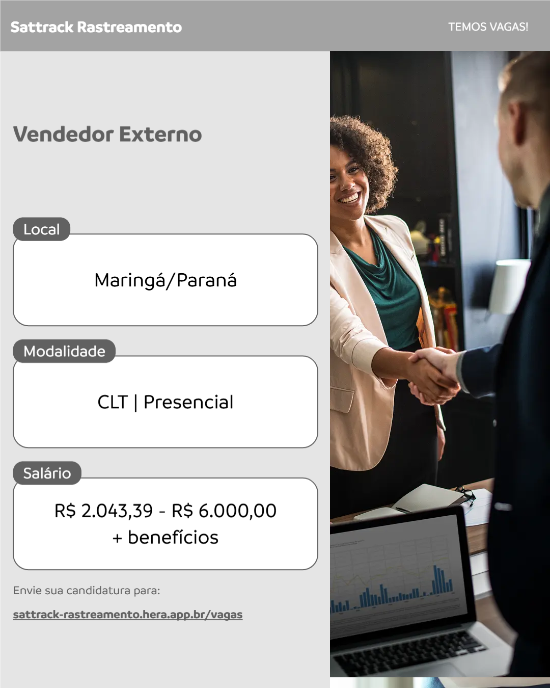 Se você gosta de vendas, relacionamento com clientes e busca crescimento profissional, essa oportunidade é para você!